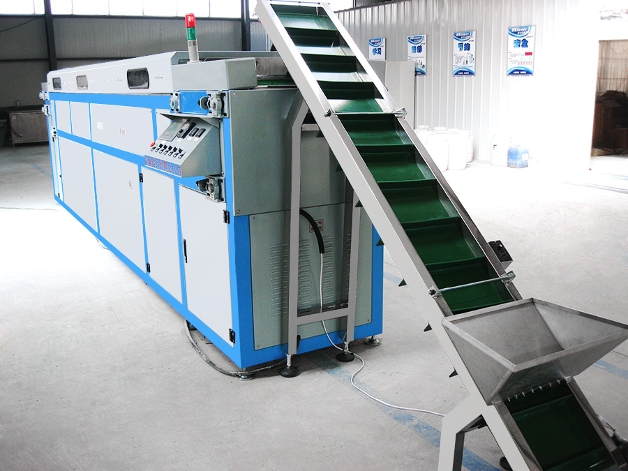 該設(shè)備有上下料網(wǎng)帶、超聲波清洗工位、噴淋漂洗工位、高壓風(fēng)切、熱風(fēng)烘干工位、溫控水加熱系統(tǒng)、風(fēng)機、溫控空氣加熱系統(tǒng)、移動式風(fēng)刀、PLC+觸摸屏控制系統(tǒng)、管路系統(tǒng)及智能電器控制系統(tǒng)等組成。自動進排液和自動加溫系統(tǒng)完全實現(xiàn)了無人干預(yù),自動運行,很大程度上降低了工人的勞動強度。先進的霧氣處理系統(tǒng)可以將清洗時產(chǎn)生的霧氣冷凝回流,空氣經(jīng)過濾和活性炭吸附后排出。